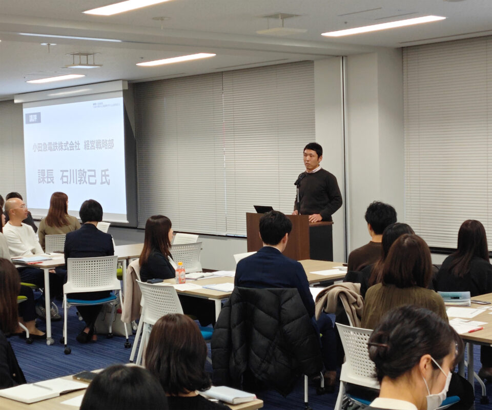 発表後は、ご来賓として講義での基調講演をご担当いただいた、総務省 自治行政局 市町村課 係長の豊田光功氏、東京都 総務局 行政部 多摩振興担当課長の佐藤真理氏、小田急電鉄株式会社 経営企画部 課長の石川敦己氏からそれぞれご講評をいただきました。